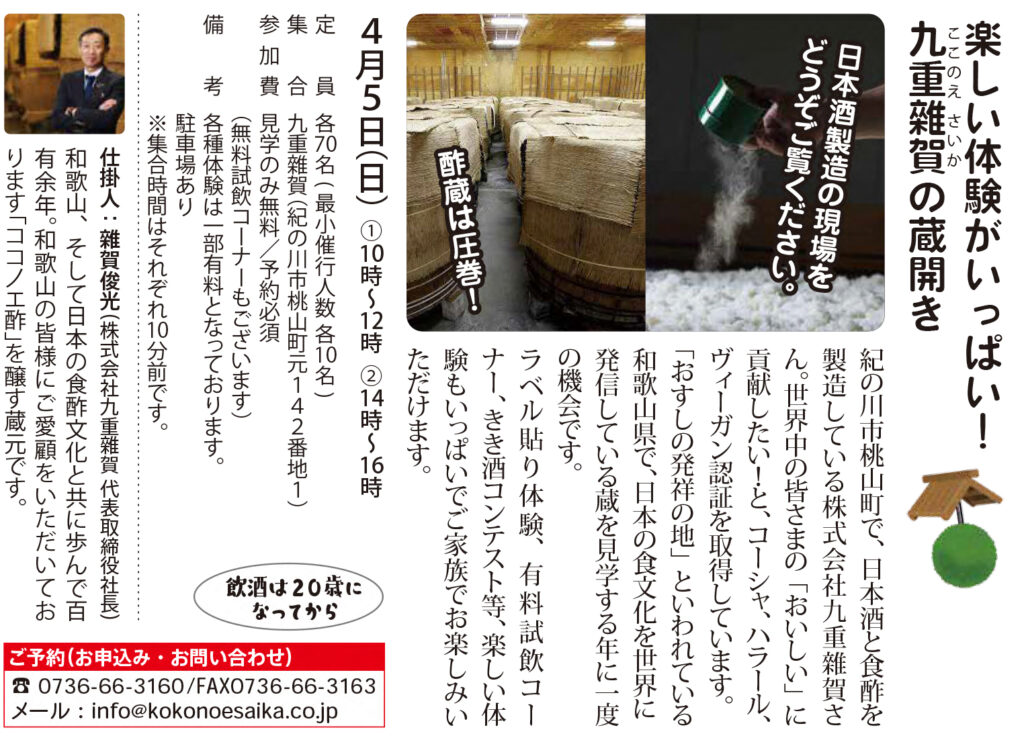 年に一度の特別公開「九重雜賀の蔵開き」開催のお知らせ【4月5日(日)】(事前予約制)